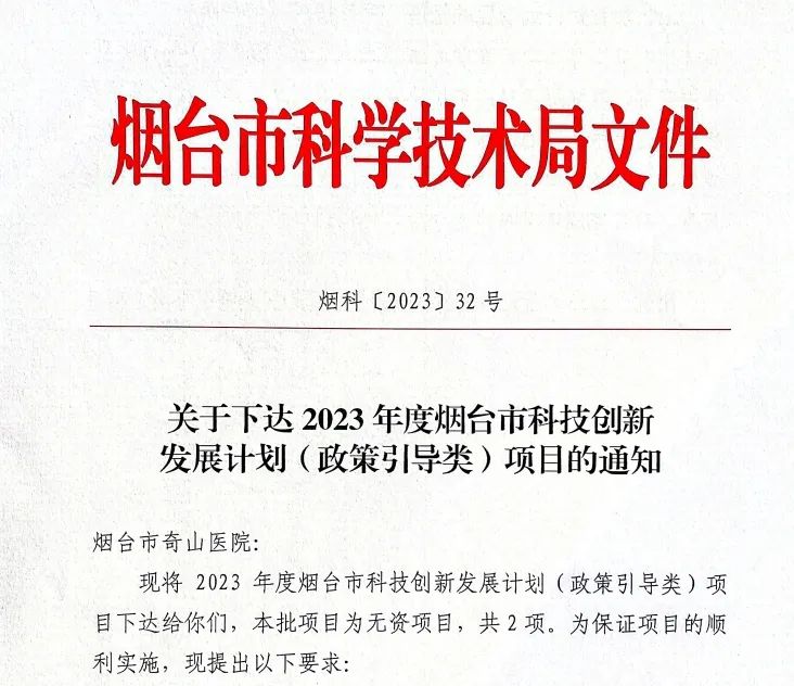 喜訊!奇山醫(yī)院兩項科研項目獲煙臺市科技局立項